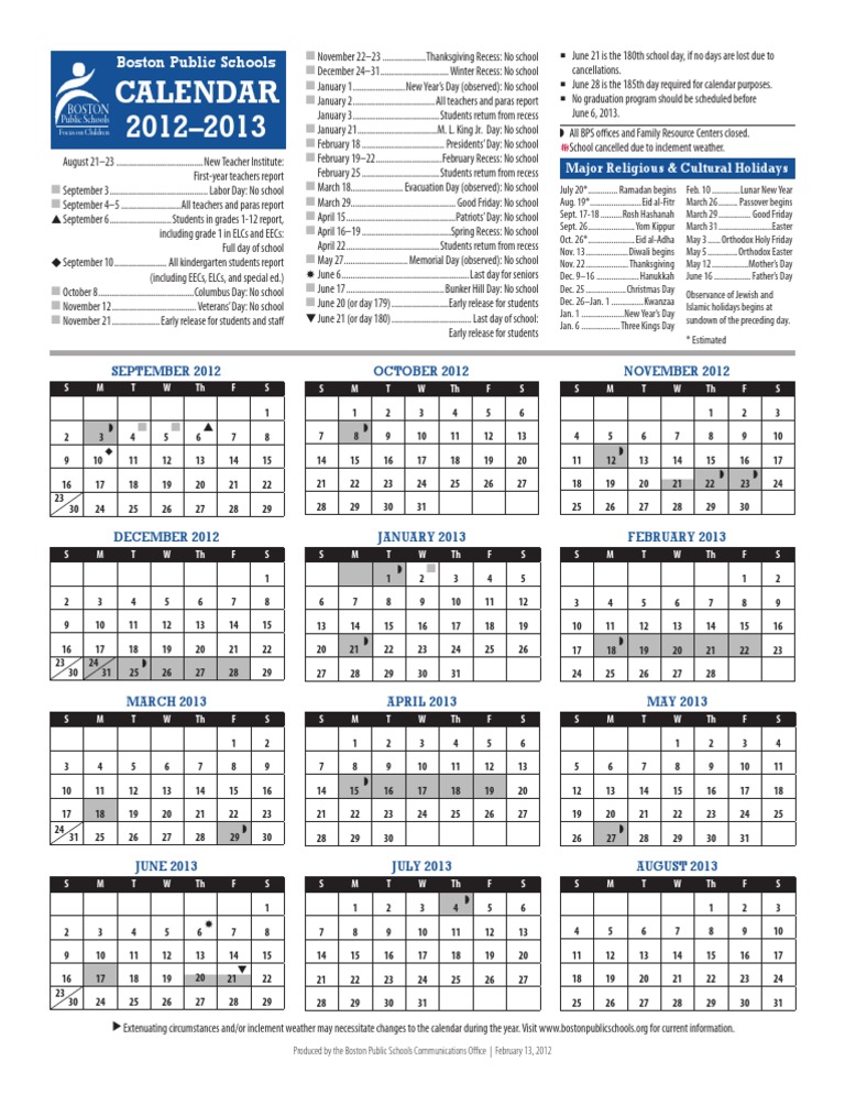 Boston Public Schools Calendar