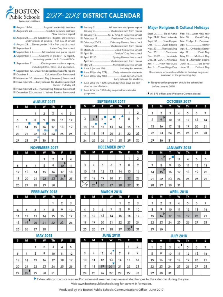 Boston Public School Calendar 2018 2019