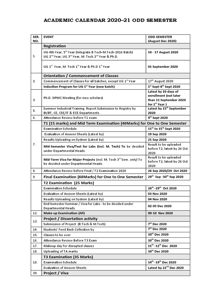 Academic Calendar 2020 21 Odd Semester Academic Term Thesis